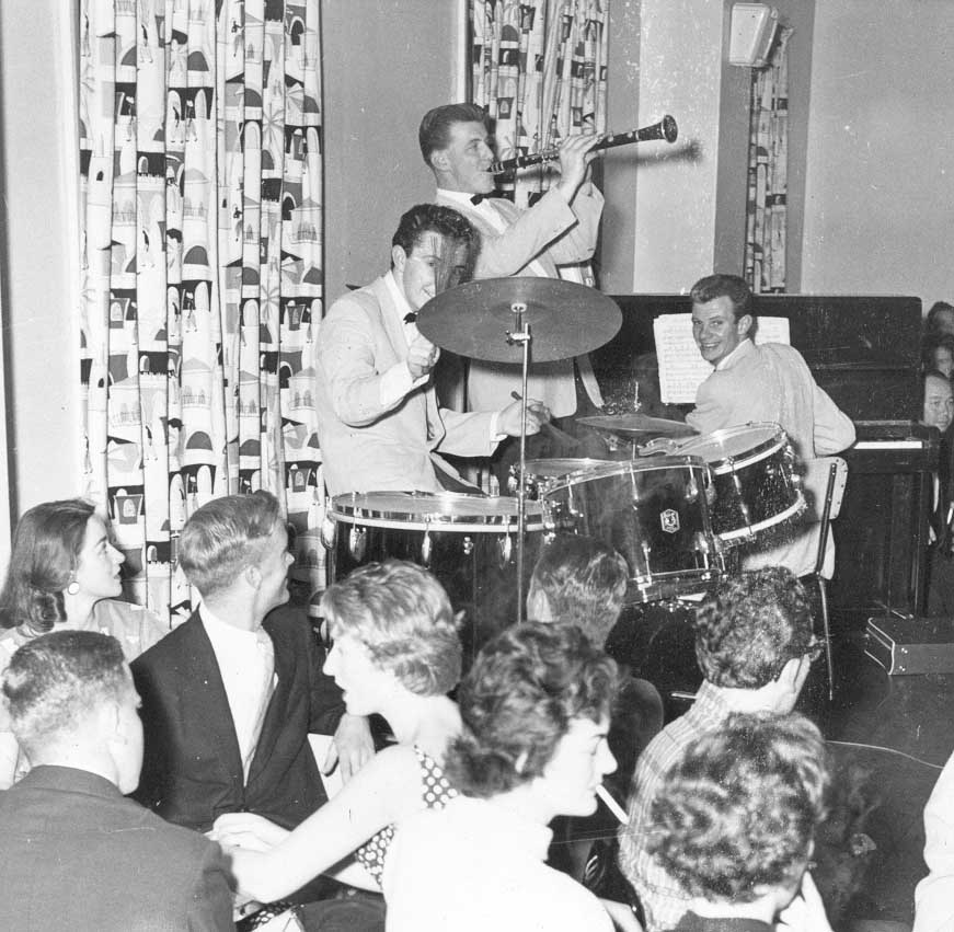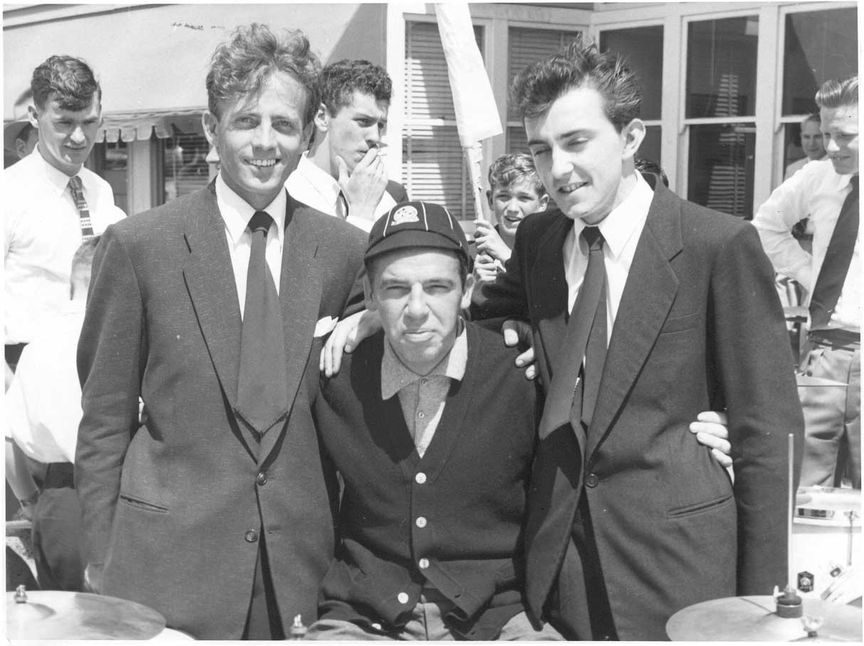 The Coolangatta Hotel, mid 50's on Queensland's Gold Coast featuring:- Len Little - Clarinetist, Ray Burnup - Pianist, with myself on drums. I will always be grateful for their friendship, encouragement, loyalty and professionalism. |
